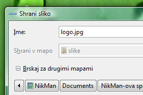 V novem določite mapo, ki ste jo ustvarili za slike in v polje Ime napišite logo.jpg.
