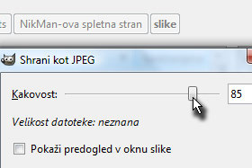 Ko se pojavi okno Shrani kot JPEG, določite Kakovost na 85 in kliknite na gumb Shrani.