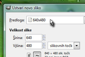 V novem oknu določite Predloga preko izbirnika na 640x480 in kliknite na gumb V redu.