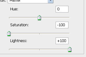 V novem oknu določite Saturation -100, Lightness +100 in potrdite na gumb OK. |