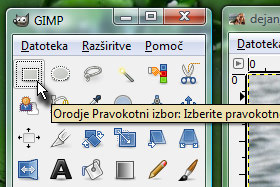 Sedaj pa izberite orodje Pravokotni izbor. |