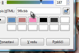 V oknu za določanje barve vpišite v polje zapis HTML vrednost 5f8cbb in potrdite na gumb V redu.