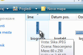 Nato pa kliknite na ikono Slika in v novem oknu kliknite na Izberi datoteko ... V oknu z raziskovalcem označite sliko biografija.jpg in potrdite na gumb V redu. |