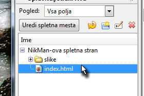 V Nvu kliknite na mali plus znak, da se prikaže vsebina celotne spletne strani in nato kliknite dvakrat na index.html, da ga odprete.