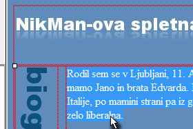 Sedaj pa kliknite na desno tabelo ter napišite poljubno besedilo o sebi ter nato celotno besedilo z miško označite (glej sliko).