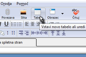 Sedaj pa kliknite na v spodnji del tabele (glej sliko). Potem pa kliknite zgoraj na Vstavi in izberite Tabela ... |