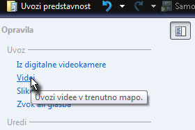 Potem pa v programu pri polju Uvoz kliknite na Videi.