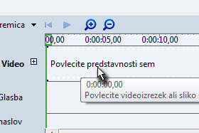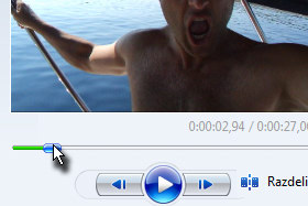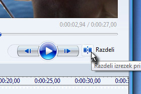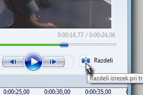 Potem pa se z drsnikom premaknite na določen del posnetka, kjer ga želite razdeliti (glej sliko)...
