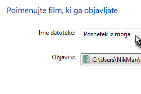 Odpre se novo okno, kjer v polje Ime datoteke vpišete poljubno ime za posnetek (glej sliko) in kliknite na gumb Naprej.