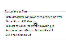 Poglejte si polje Bitna hitrost, kjer je dobro, da je posnetek najmanj 300 kb / s velik (glej slik).