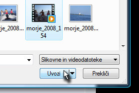 Odpre se okno z raziskovalcem, kjer označite video posnetek in kliknete na gumb Uvozi.