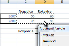 ![]() Odpre se okno z argumenti funkcije, kjer z miško označite polja z rezultati (glej sliko). |