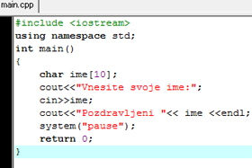 Sedaj v okno napišemo program. Napisal bom kar to, kar smo se učili v c++ 1. delu.