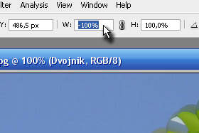 Zgoraj v orodni vrstici nastavite W na -100% (glej sliko) in potrdite na tipko ENTER.