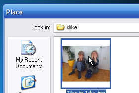 V oknu z raziskovalcem označite poljubno fotografijo in kliknite na Place. |