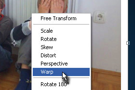 Potem pa kliknite na označeno z desnim miškinim gumbom in izberite Warp. |