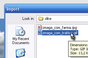 V oknu z raziskovalcem označite datoteko zmaga_com_traktor.gif in potrdite na gumb OK. |