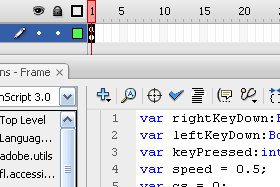 var rightKeyDown:Boolean; var leftKeyDown:Boolean; var keyPressed:int; var speed = 0.5; var cs = 0; var friction = 0.96; startMe(); function startMe():void { leftKeyDown = false; rightKeyDown = false; stage.addEventListener(KeyboardEvent.KEY_DOWN, pressKey); stage.addEventListener(KeyboardEvent.KEY_UP, releaseKey); } function pressKey(event:KeyboardEvent):void { keyPressed = event.keyCode; if (keyPressed == Keyboard.LEFT) { leftKeyDown = true; } if (keyPressed == Keyboard.RIGHT) { rightKeyDown = true; } car.addEventListener(Event.ENTER_FRAME, driveCar); } function driveCar(event:Event):void { if (leftKeyDown) { cs -= speed; } if (rightKeyDown) { cs += speed; } car.x += cs; cs *= friction; } function releaseKey(event:KeyboardEvent):void { var key_:int = event.keyCode; if (key_ == Keyboard.LEFT) { leftKeyDown = false; } if (key_ == Keyboard.RIGHT) { rightKeyDown = false; } } |