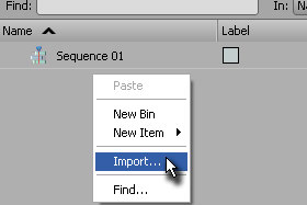 Kliknite na sivo polje (glej sliko) z desnim miškinim gumbom in izberite Import...