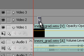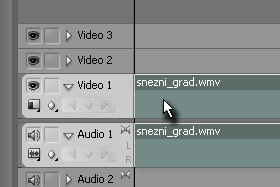 Z miško uvoženi posnetek potegnite v polje Timeline, točneje v vrsto Video 1 (glej sliko).