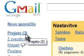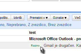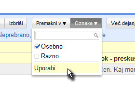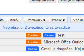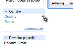 Kliknite na sivi kvadratek (glej sliko) pri določeni oznaki... Če bom v mojem primeru kliknil na oznako Osebno, mi bo Gmail prikazal samo sporočila, kis o bila označena z omenjeno oznako. |