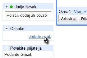 Na levi strani pri polju Oznake kliknite na Urejanje oznak.