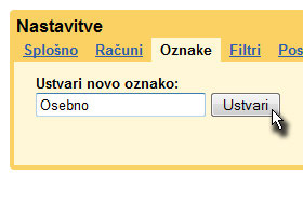 V oknu z nastavitvami v polje Ustvari novo oznako vpišite poljubno ime in kliknite na gumb Ustvari.
