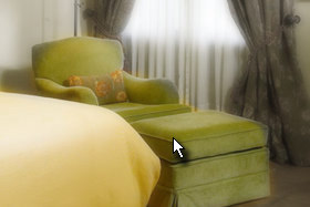 Sedaj pa z miško pojdite po predmetih, kjer želite imeti nazaj barve. V mojem primeru je to postelja in fotelj. če |