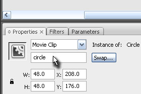 Potem pa pritisnite tipko F8 in v novem oknu v polje name vpišite Circle in Type določite Movie clip. Potrdite na gumb OK. |