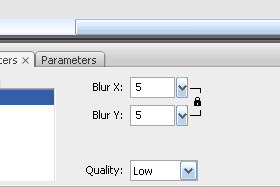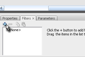 Potem pa kliknite na zavihek Filters in nato na znak plus (glej sliko) ter izberite Blur.
