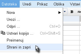 Kliknite sedaj še na Datoteka in izberite Shrani in zapri.