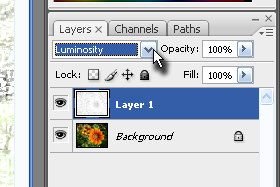 Potem pa združenemu layerju določite senčenje na Luminosity (glej sliko). |