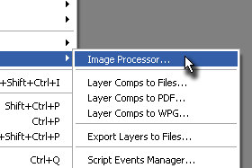 ![]() V Photoshop-u kliknite zgoraj na File, Scripts in izberete Image Processor... |