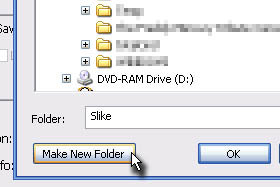 ![]() V novem oknu označite mapo, kjer želite shraniti datoteke s spremenjenimi dimenzijami ter kliknite na gumb Make New Folder. |