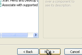 Tukaj lahko sedaj izberete dodatne storitve. Prva opcija je namestitev BS.Player orodne vrstice v brskalnik. Preko te vrstice lahko glasbo ustavite, utišate, izberete pesem ... Druga možnost je izbira BS.Playerja kot privzet iskalnik v brskalniku, tretja možnost pa nastavi BS.Player stran za domačo stran v brskalniku. Ko izberete željene nastavitve pritisnite Next.