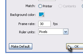 V novem oknu nastavite poljubno ozadje in Frame rate na okoli 30 fps. Kliknite na gumb OK. |