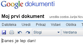 Jaz sem odprl kar moj prvi ustvarjen dokument.