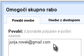Odpre se novo okno, kjer napišete e-poštni naslov osebe, s katero želite deliti dokument.