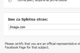 V naslednje polje vpišite ime. Jaz sem izbral Zmaga.com.