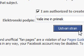Za konec pa se še podpišite in kliknite Ustvari stran.