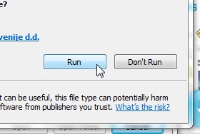 Počakajte, da se datoteka prenese in kliknite Run (Zaženi).
