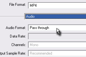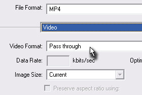 V novem oknu preko izbirnika določite Video in Video Format na Pass through (glej sliko).