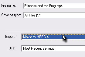 V novem oknu v polje File name vpišite logično ime filma in nato Export preko izbirnika določite Movie to MPEG-4.