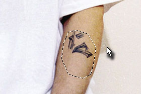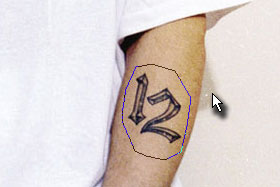 Tetovažo, ki jo želimo odstraniti, označimo s pen tool-om.