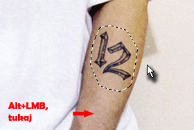 Še enkrat z alt+ levi miškin klik označite neko točko na koži, in pojdite ponovno preko tetovaže. |