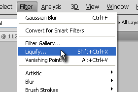 ![]() Izberite zgoraj Filter, Liquify.