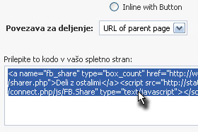 Kliknite tukaj, da odprete spletno stran za ustvarjanje Facebook kode, ki jo boste vstavili na spletno strani.