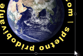 ![]() Sedaj pa napišite poljuben napis okoli planeta. |