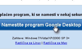 Kliknite tukaj, da odprete uradno spletno stran programa Google Desktop. Kliknite na gumb Namestite program Google Desktop.