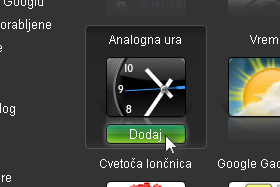 Izberite si nek gadget in pod njim kliknite na gumb Dodaj. Jaz sem izbral gadget z Analogno uro.